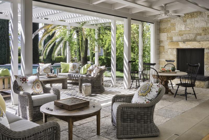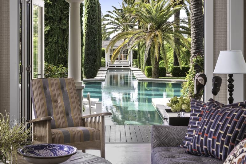 Stephan continued to open up the house by installing bi-folding glass exterior doors to the North, opening up the family room to the gardens, pool, and pool house. Increasing the perception of how big the spaces were.