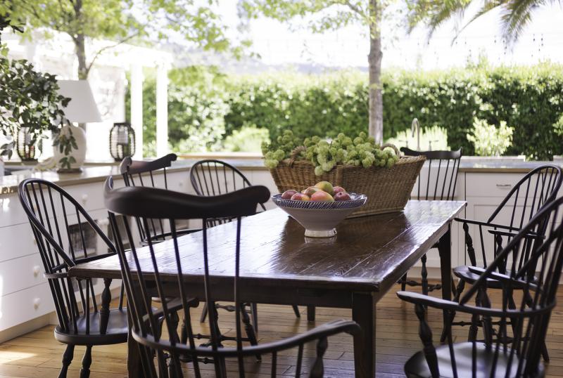 To the East: refrigeration. To the South: the range. The West features a beautiful elevation with a bank of windows flush with the porch’s edge allowing direct light to enliven the space.
