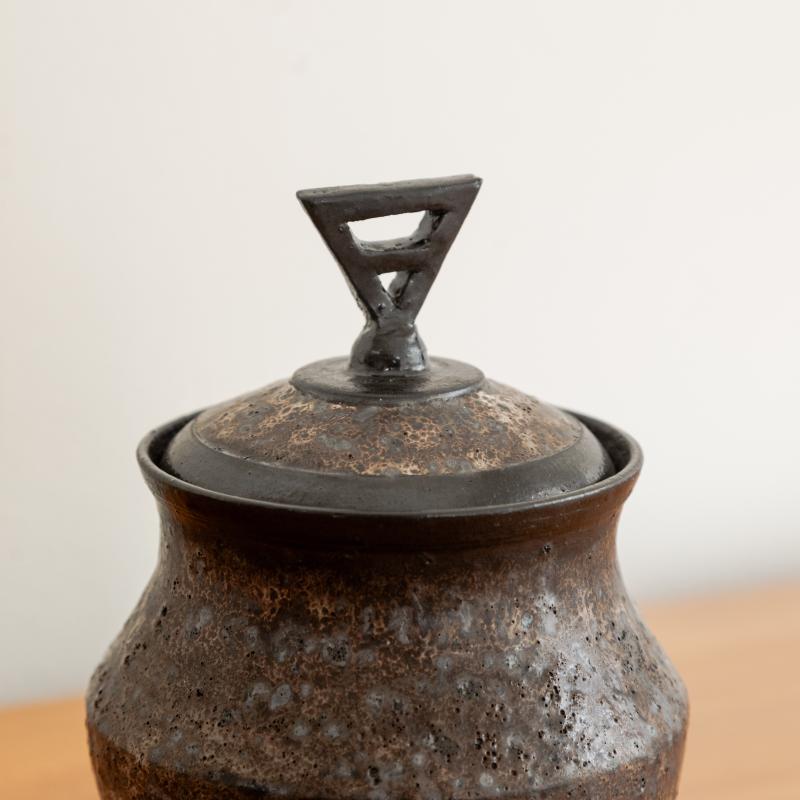 Lukas Weyandt likens the art of making pottery to the medieval practice of alchemy – transforming matter into something precious. Medieval alchemists were never able to conjure gold, but Weyandt has succeeded in turning raw clay into something precious – gold in the eyes of his admirers. Precision and attention to detail guide his hand on the potters’ wheel and the resulting forms are both elegant and structural. In the glazing process, layering reveals underlying tones of blue, green, and gold emerging from the primary bronze coloration...alchemy achieved!