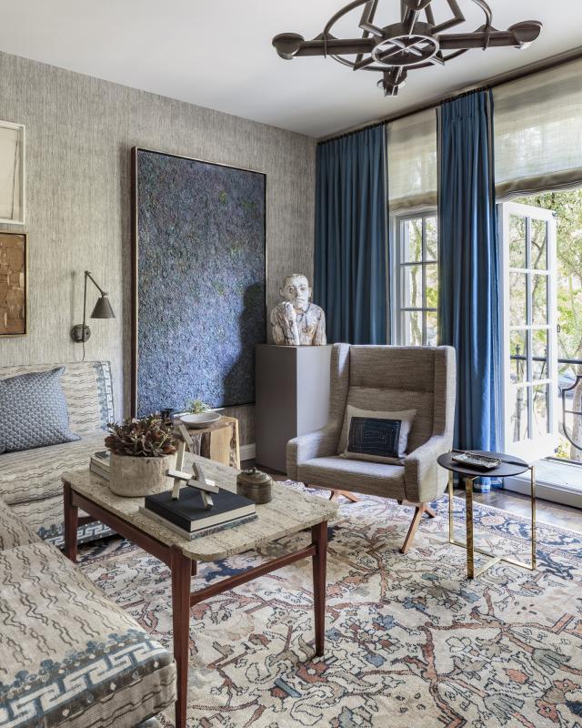 Stephan’s contribution to the home was the study. He set out to channel the masters who defined what interior design could be in the 1970’s & 80’s–Michael Taylor, Bruce Gregga, & Billy Baldwin (to name a few). Pulling from mid-century, primitive, and baroque styles, critics commended the thoughtful convergence of old & new.