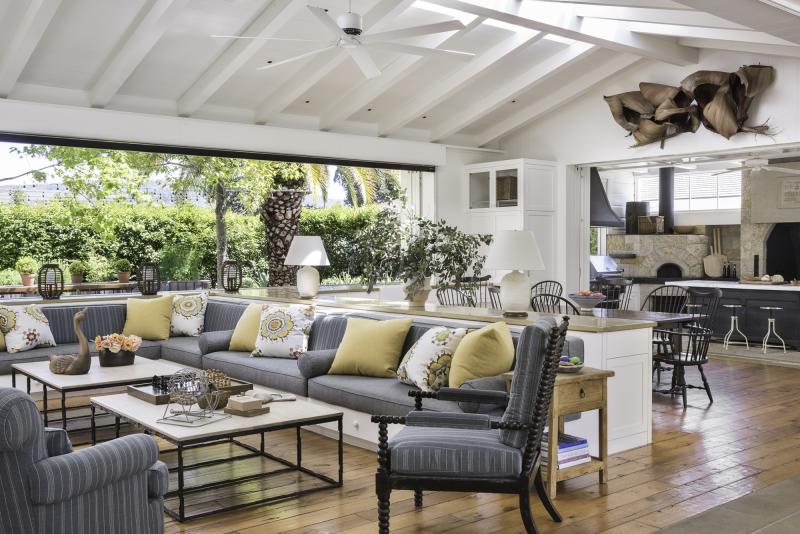 Stephan continued to open up the house by installing bi-folding glass exterior doors to the North, opening up the family room to the gardens, pool, and pool house. Increasing the perception of how big the spaces were.