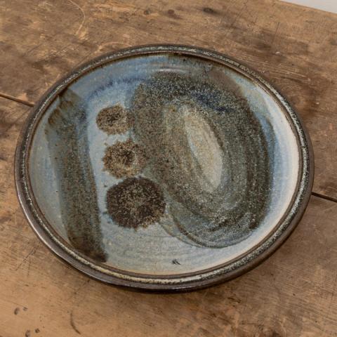 American studioware earthenware platter with gestural hand glazed pattern, U.S. 1970's.Dimensions: 12”dia. x 3”h