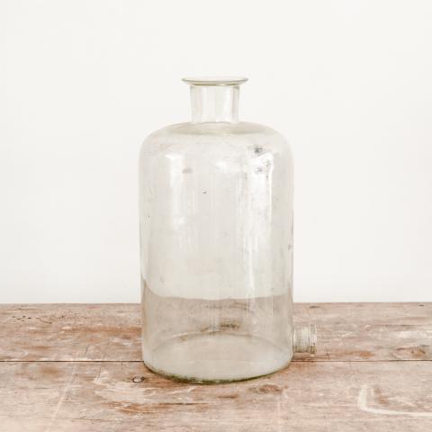 Large vintage lab glass vessel with flared lip top and dispenser spout.Dimensions: 8"dia. x 16"h