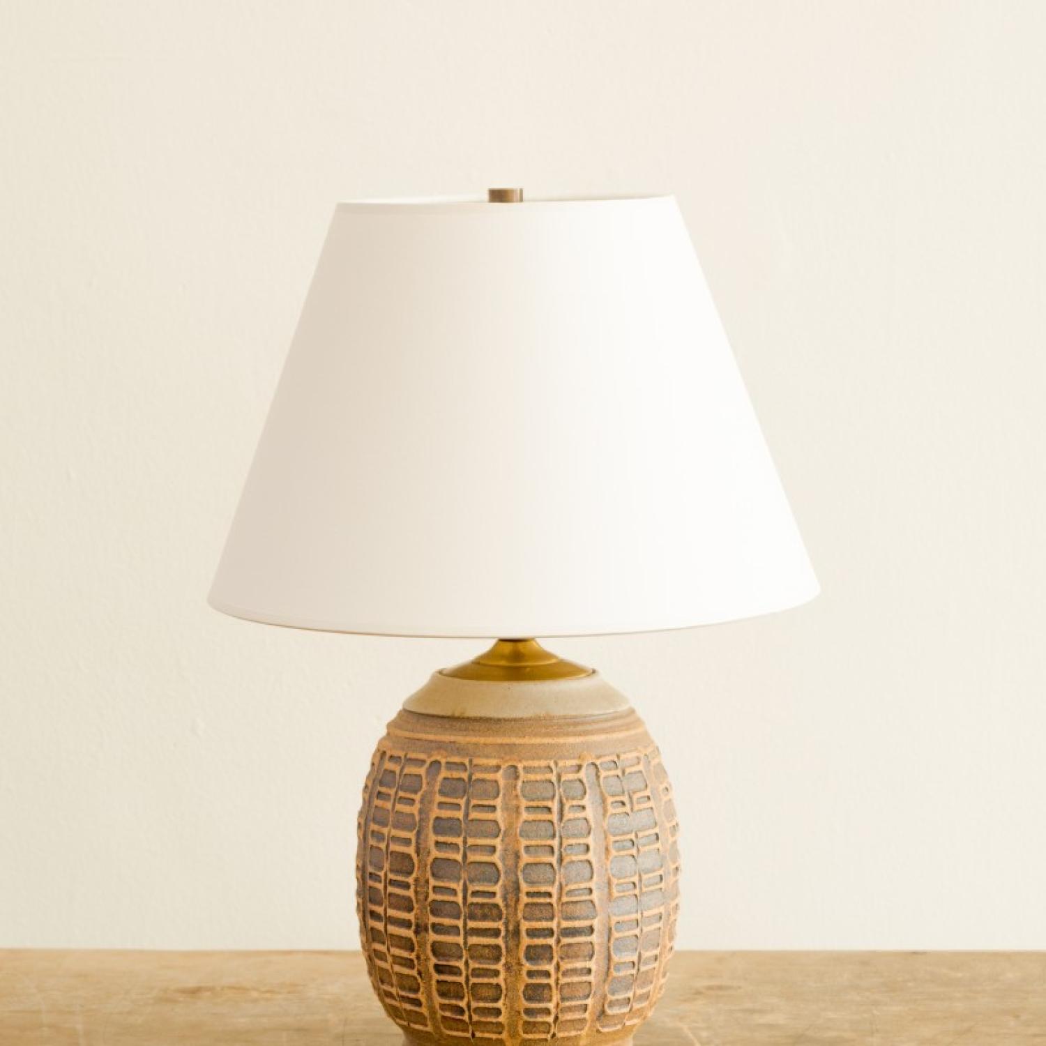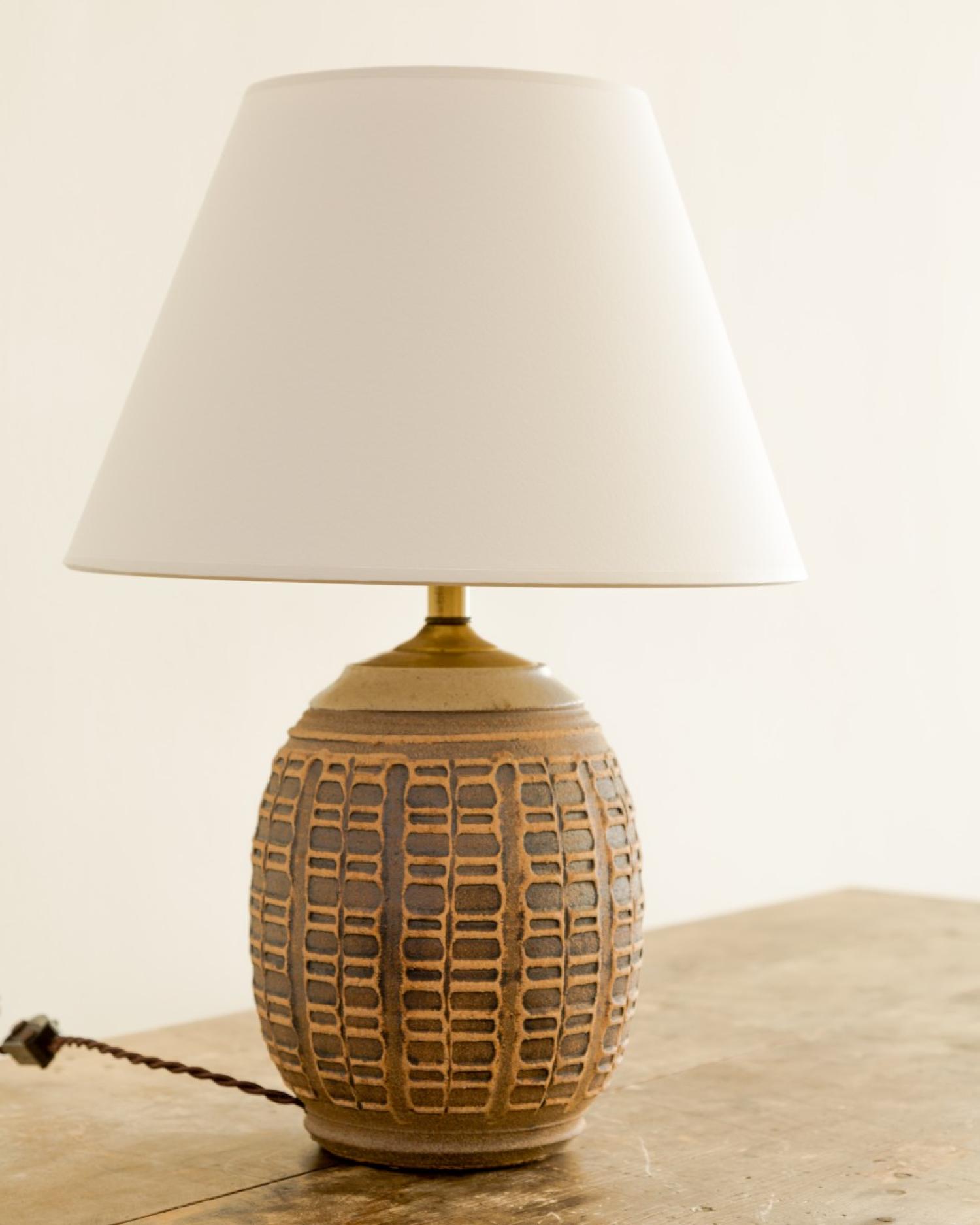 Stoneware lamp base with relief texture design by Bob Kinzie, United States circa 1960's.