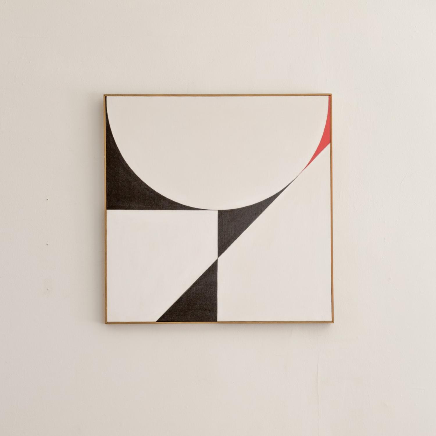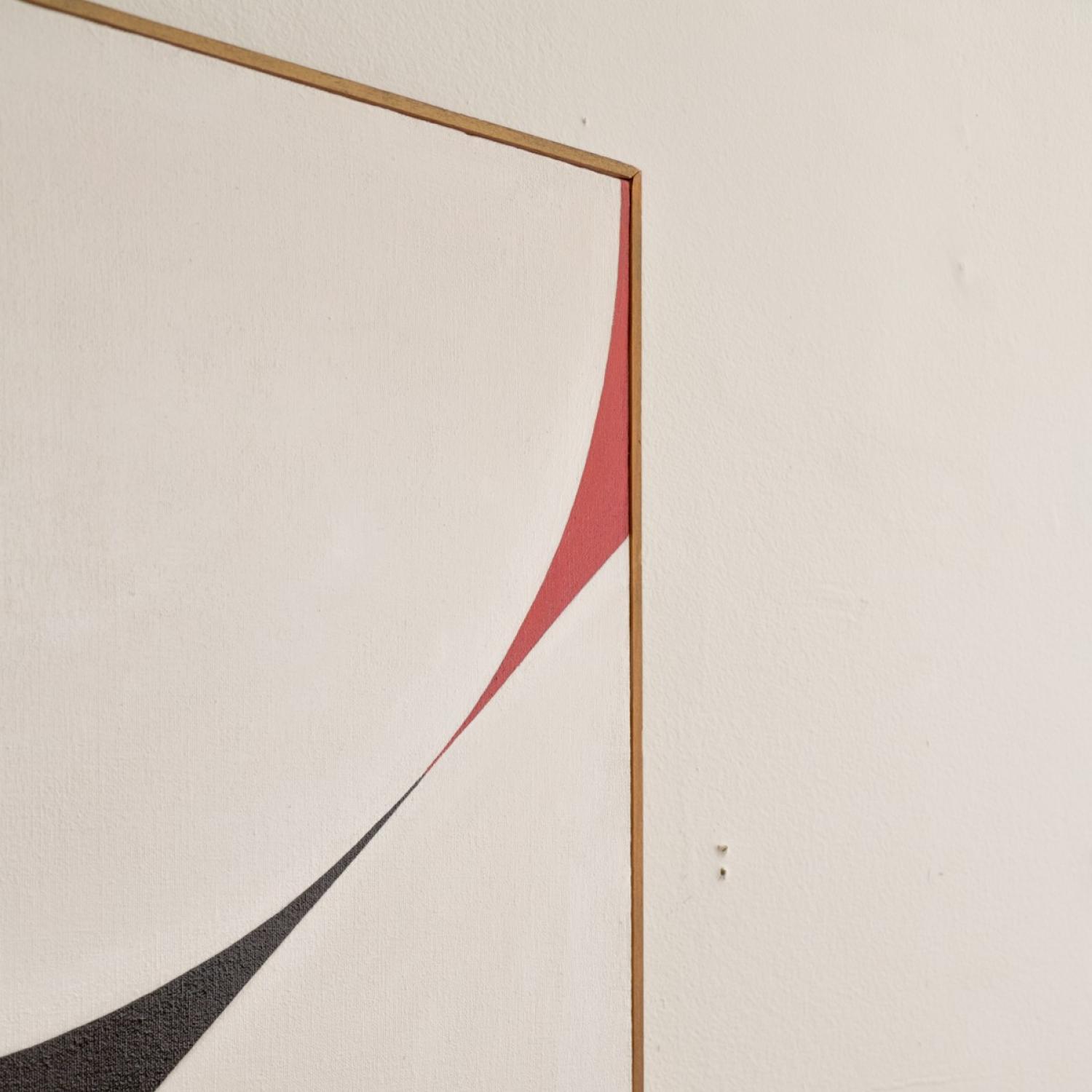 Graphic hardline painting by Tucson artist Martha Willis Breeden, framed oil on canvas in original vintage condition, circa Tucson 1970's.