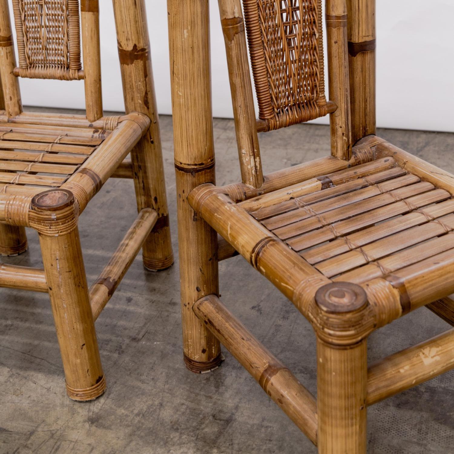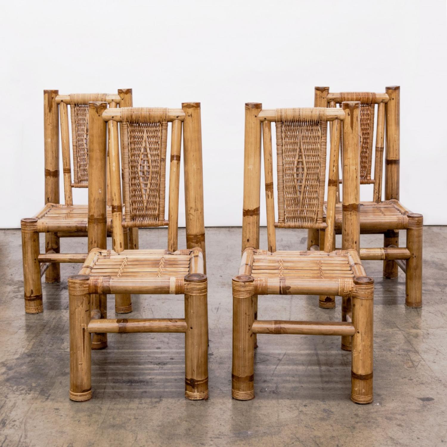 Set of four primitive bamboo shoot frame side chairs with split woven bamboo seats and backs, France circa 1950's.