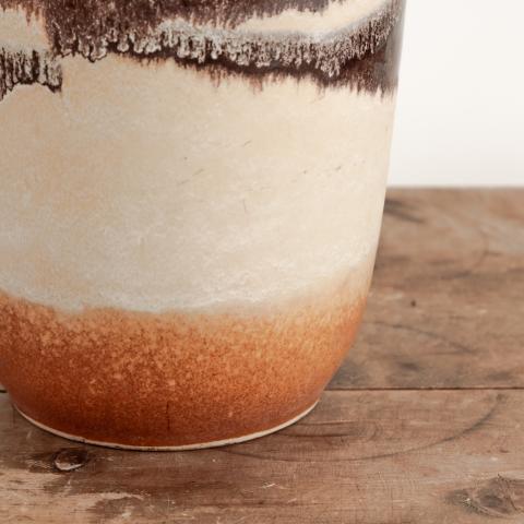 Large ceramic vase 517-45 with caramel and earth toned banded glazing, West Germany circa 1970's.